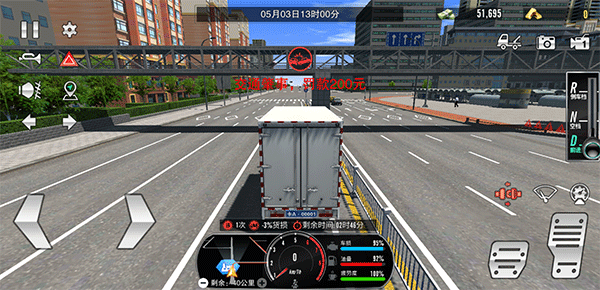 5、在运输过程中,玩家通过下方地图导航至运输终点,但在运输途中注意系好安全带(安全带时刹车上方的红色图标),并且不要违反交通规则、以及撞车等,不然不仅会返款扣钱,还会造成货损
