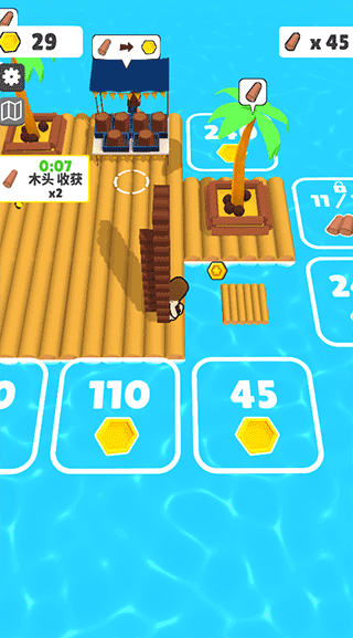 然后收集各种漂流材料。进一步建设自己的离岸住宅。