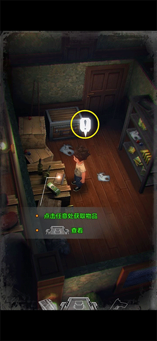 可交互的物品会有光点闪烁,走到可交互的物品前会显示惊叹号,出现图上圈的标识时点击屏幕任意处可以触发交互。