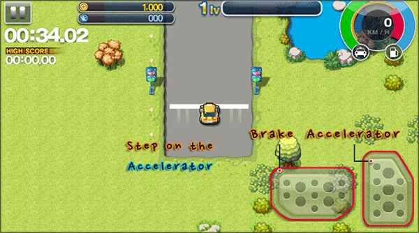 3、如图所示,按着左右控制方向,右下角分别是加速和刹车。
