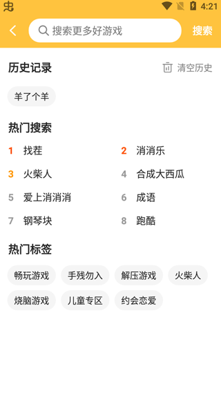 2、点开搜索,玩家还可以直接搜索游戏,免去找游戏的烦恼;