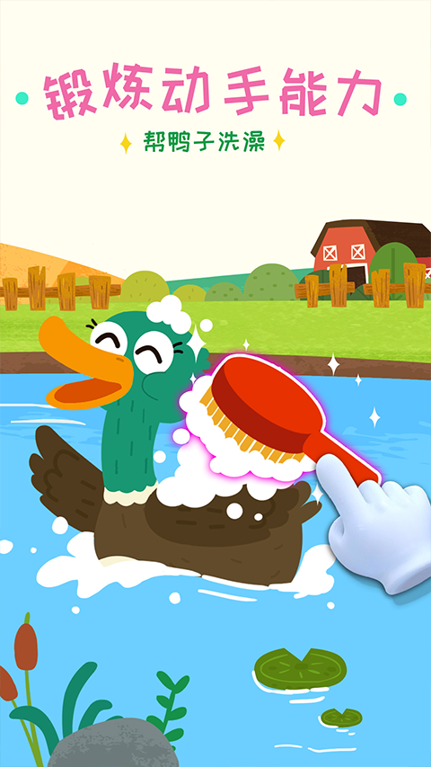 动物农场里的小鸡饿了,你能找出小鸡喜欢的美食喂给它吗?接下来去清理羊毛吧,拿起动物洗澡刷,把绵羊刷干净。帮奶牛赶牛蝇,喂它吃牧草。击退胡蜂,保护蜜蜂!宝宝们,你的农场动物能不能健康成长呢?就看你的咯!