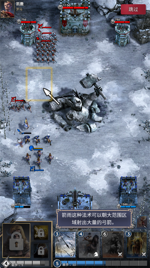 罗马的标志,虽然在游戏里没有重标枪和龟甲阵,但是硬度也是数一数二的,大象都不一定能冲死,弩炮都能格挡下来,敌人冲上来了派军团往前顶就是。缺点是笨重以及输出乏力,不适合打进攻。