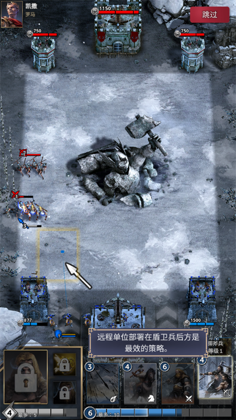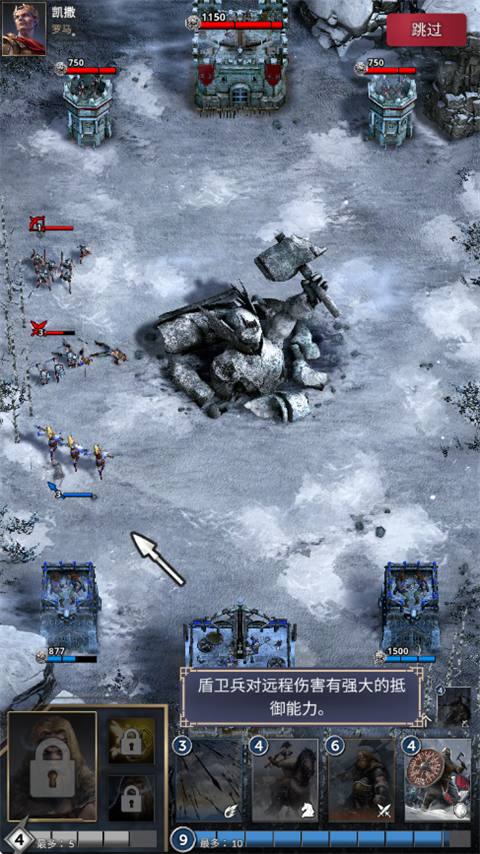 4、到了我们进攻的时间,可以部署维京盾战士!盾卫兵对远程伤害有强大的抵御能力。