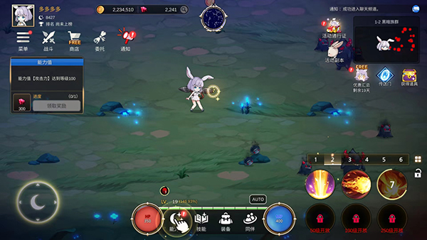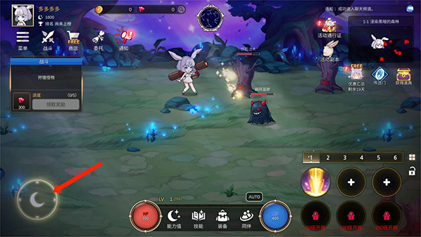2、邪恶的黑暗吞噬了美丽的月光,你会变成一只月亮兔,月亮的守护者,现在你需要去冒险并升级你的角色。