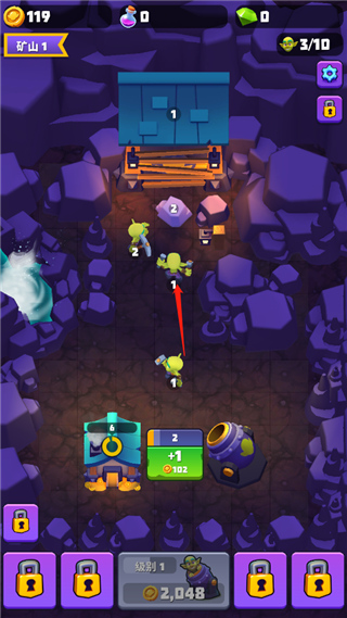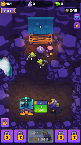 3、在矿石的挖掘上,除了基本单位的钻石之外,游戏中还提供了可以自动产出金币的矿井等待玩家激活。