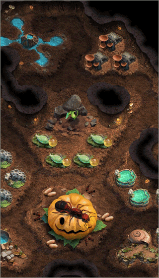 蚂蚁的巢穴可称为“城堡”,它为卵与后代建立了一个安全的成长环境。 巢穴规划是蚁国发展的重要策略, 你要科学建造地下蚁巢, 挖掘蚁道, 打造你心中的理想蚁国!
