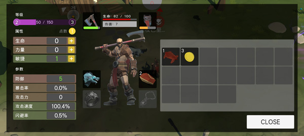 2、点开摇杆上方的背包使用道具和查看角色属性;