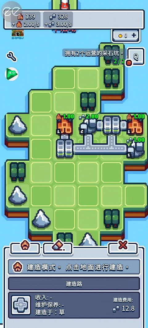 1、玩这个游戏想要升级就必须发展经济链,新手就从建造一个完整采石矿开始,并且还要不断的给采石坑升级才能更好的运营采石矿解锁之后的关卡。