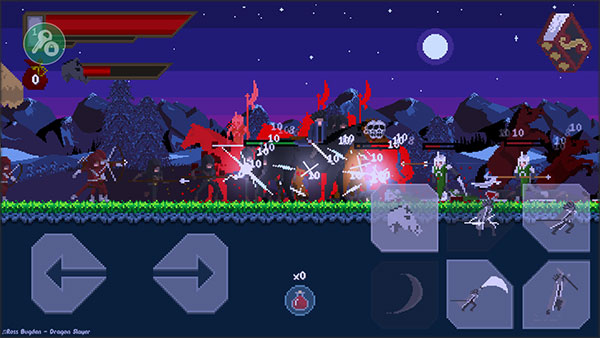 5、通过左边控制人物的移动,右边控制攻击和技能。