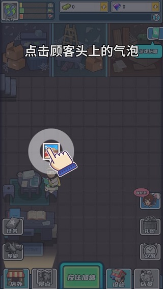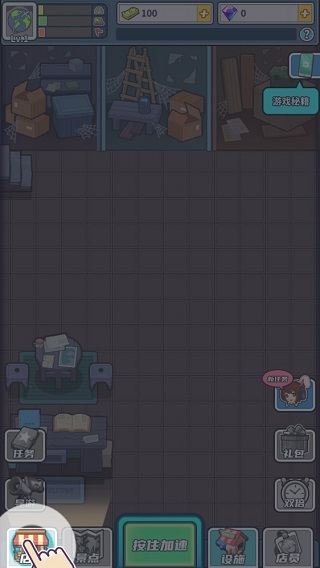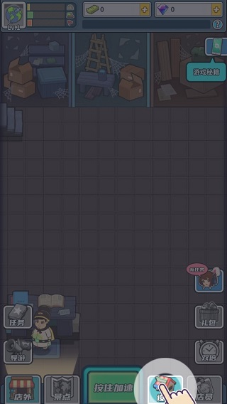 新店装修,打扫干净是第一步,按照图中指引,点击屏幕位置处,开始清理杂物。