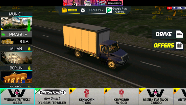 不断的运输,累积资金,自己就可以开一家自己的运输公司了,招募人员,购买新的卡车,签合同,然后赚大钱。