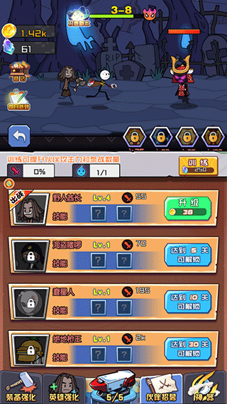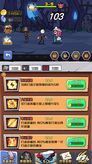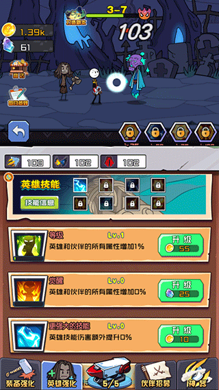 4、点击“英雄强化”来提升主角等级,解锁新的技能。