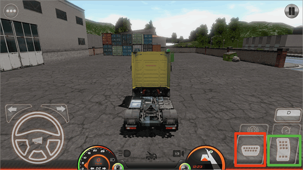 3、正式上路,注意操作,绿色方框内的按钮是油门,红色方框内的按钮是刹车。
