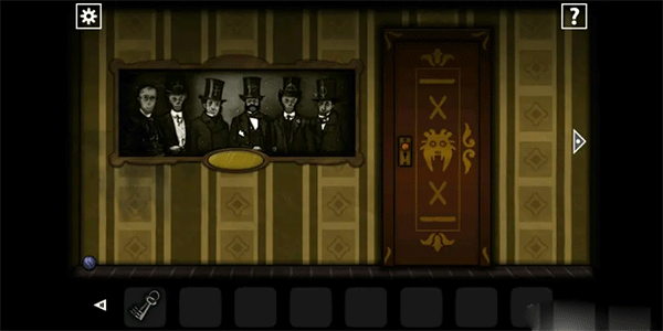 通过电梯来到一层,先往左走进入第一个房间拿走左下角的「蓝色弹珠」。点击画像,观察帽子上的符号。