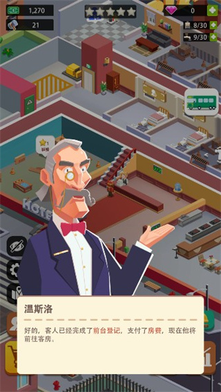 4、客人每次使用酒店服务都会付费,这也是玩家主要的经营收入,我们在这里要做的就是用赚来的收入去扩大酒店规模