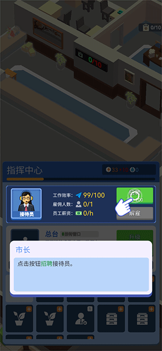 1、进入救援大亨游戏后,玩家首先需要招聘一个接待员