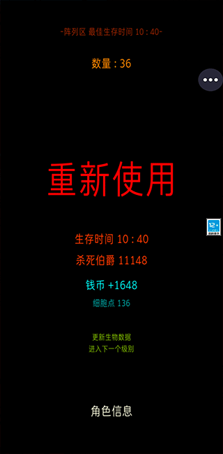 5、角色血量为零时则死亡,此时会结算您的生成时间和杀怪数量等等,快来挑战自己的极限吧。