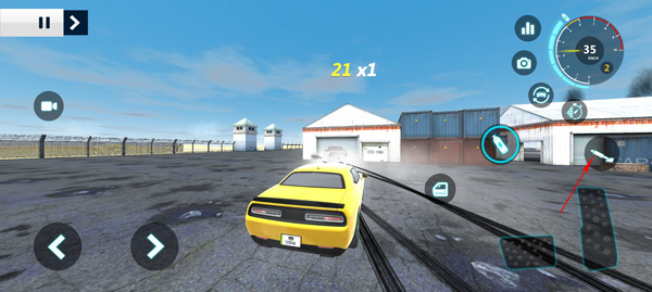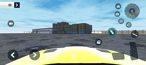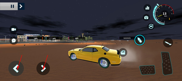1、进入游戏之后,点击左下角两个左右按钮控制车辆的左右方向;