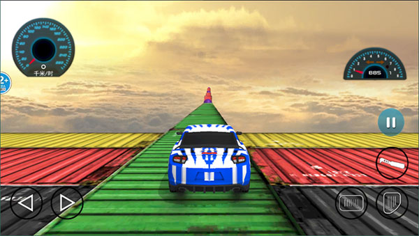 2、游戏的玩法也非常简单,我们需要操控汽车在空中架起的赛道上前进到达终点,通过左侧的按钮控制汽车的左右转向,右侧的按钮分别用来控制汽车的前进、后退和刹车;