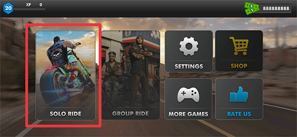 1、选择你的摩托车,选择游戏模式进入游戏,通过按钮控制摩托车移动、加速或减速