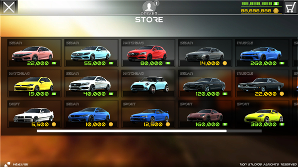 6、玩家如果金币足够的话可以自由的买你想要的汽车。