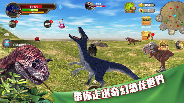 1、充满神秘的世界,各种强大的恐龙横行,让你的生存充满挑战性;