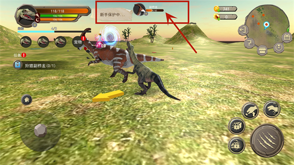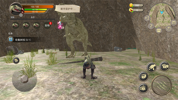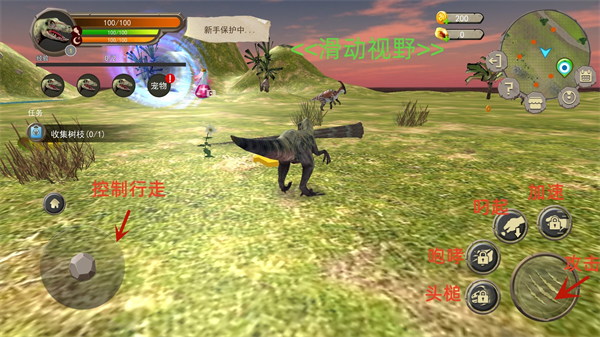 2、通过左边摇杆可以控制恐龙行走,滑动屏幕可以控制游戏视角。