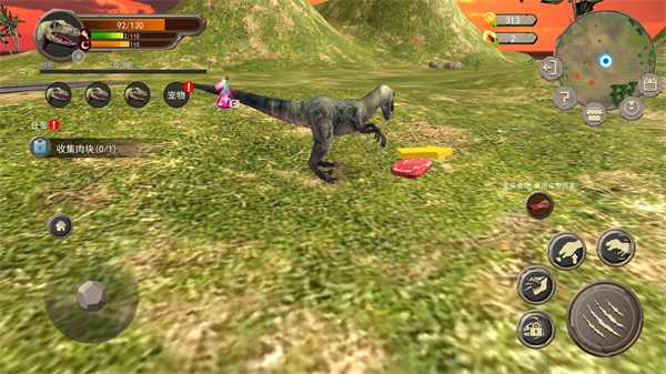 3、恐龙会自动消耗饱食度,需要及时的进食肉块补充饱食度,所以时刻关注恐龙的状态是必要的。