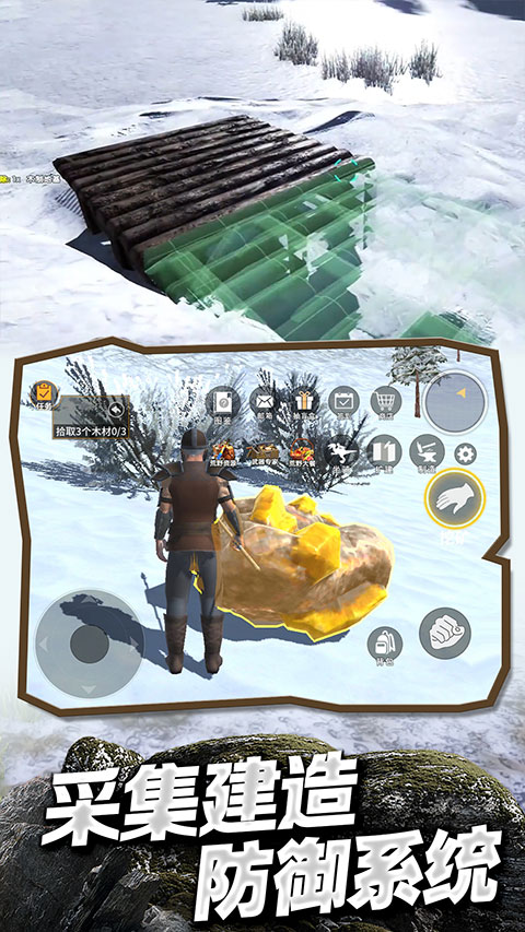 游戏的场景设定在冰河世纪,多样化的游戏玩法和各种更逼真的3D游戏图像将会给您带来更沉浸式的体验,其中拥有着许许多多的挑战等待着你来开启,但也加入了战斗元素,可能还要与怪兽战斗,你需要不断提高自己的实力,成为强大的猎人。