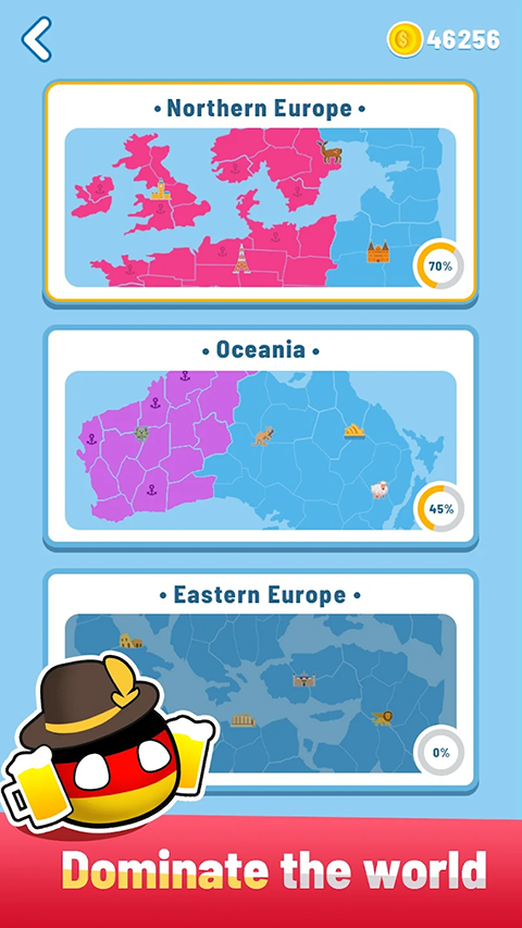 1、有趣的游戏玩法,在游戏开始时,您可以获得小单位,通过占领扩大您的部队,选择进攻目标,聚集部队的力量以占领更多领土,最终获胜!