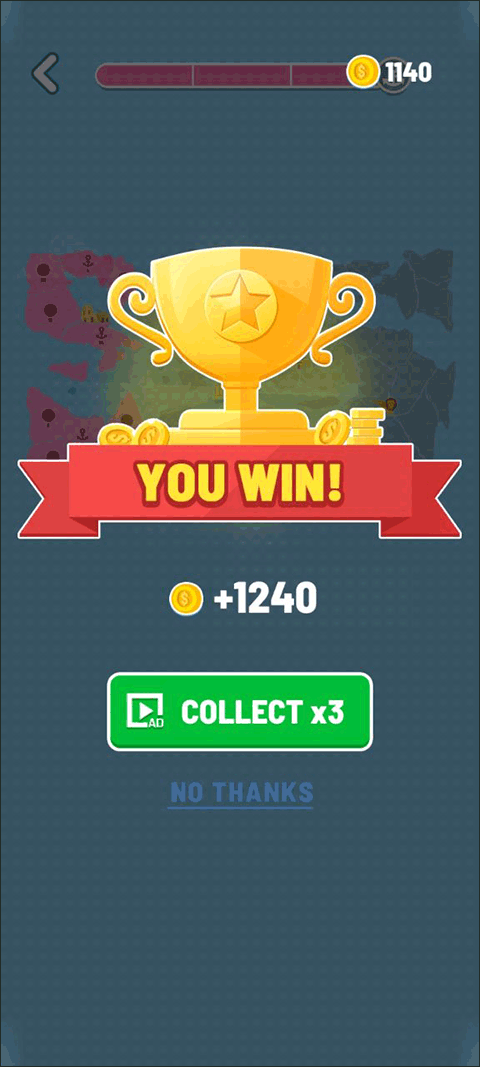 游戏成功后我们就会获得一定数额的金币,难度越高,获得的就越多。