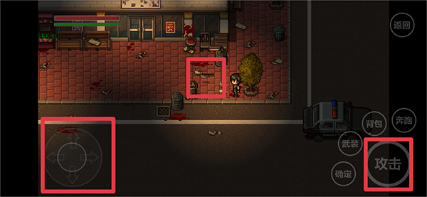 1、打开游戏,根据剧情的指示我们将去营救家人,下车后使用左边轮盘操作角色的移动,右边攻击击杀僵尸,然后操控角色移动至道具中获得小刀