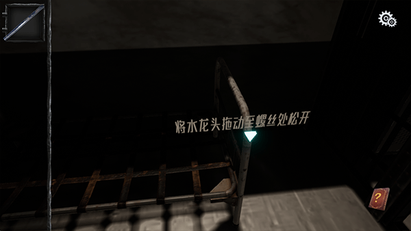 1、玩家进到游戏后,将画面拖动至监狱牢房可触发剧情,剧情结束才可以进行解谜,点击水池上方的水龙头可获得一个重要道具。