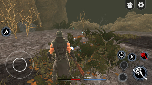2、游戏内如图,屏幕左边控制角色移动,右边则为攻击、闪避、瞄准等键位,下方显示角色血量和蓝量;