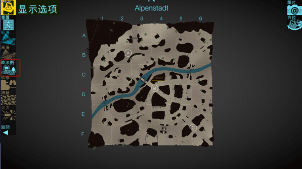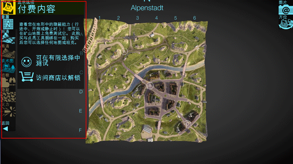 显示选项中提供了重置、标清、高清、战术图、侦察、隐蔽、火力等功能,显示棕色按钮的功能是付费功能,需要去商店自行解锁。
