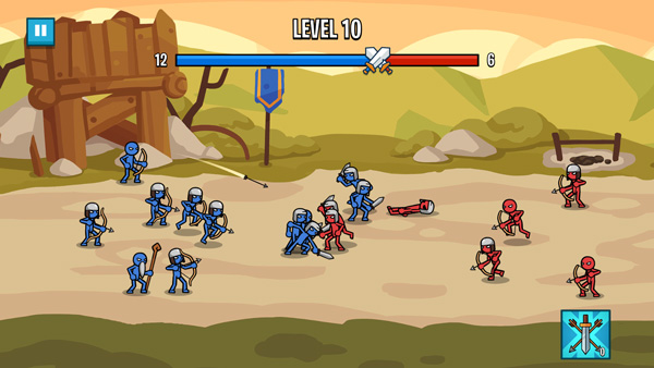 坚持战争2军团之战游戏玩法独特,操作简单,玩家可以指挥属于自己独特的火柴人军团展开诸多的战斗,在这里排列好你的人物吧,通过指挥官合理的排兵布阵,让你的军团能够发挥最大的攻击力。而且玩家需要尽可能多的招募兵种,组建自己的军团,需要根据战况灵活搭配各种不同的阵容,让你能轻松的战胜敌人。
