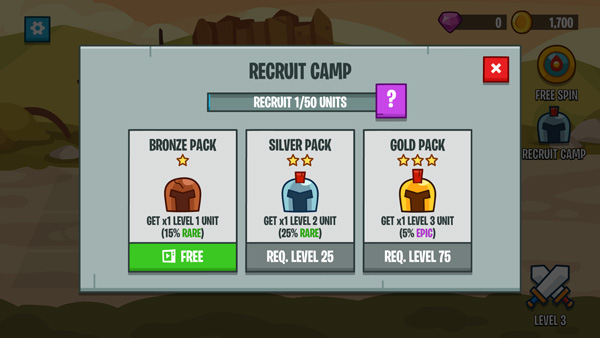 5、随着关卡的增加,敌人会越来越强,你需要通过招募来获得更多的士兵;