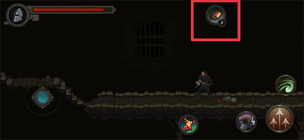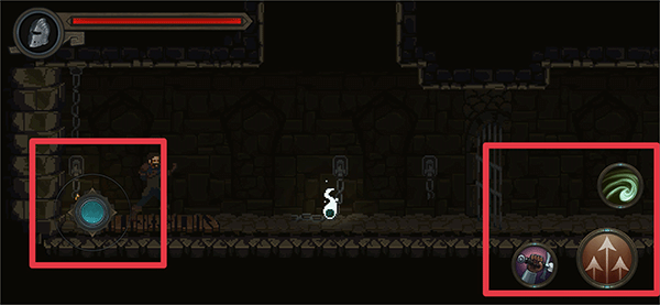 1、在游戏中利用左下角操控盘控制角色的移动,右边分别为攻击、跳跃和翻滚