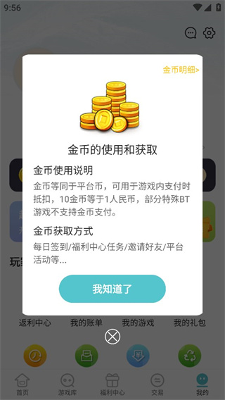 金币等同于平台币,可用于游戏内支付时抵扣,10金币等于1人民币,部分特殊BT游戏不支持金币支付。