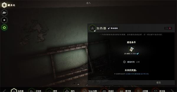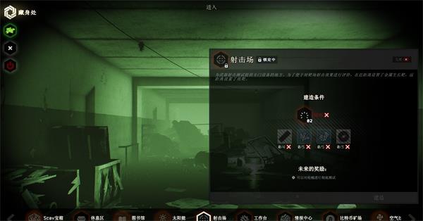避难所相当于玩家自己的根据地建设,通过兴建避难所可以生产物资并且开启枪械改装等功能。但是除了钱币意外建造设施还需要很多额外道具,需要玩家或者撤离并从地图中带出来,对于新手玩家来说并不建议花太多精力和财力用于建造避难所。