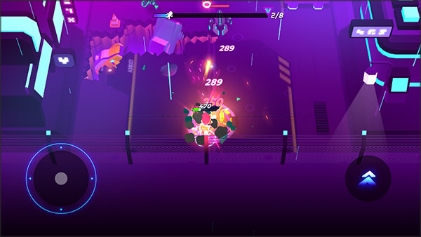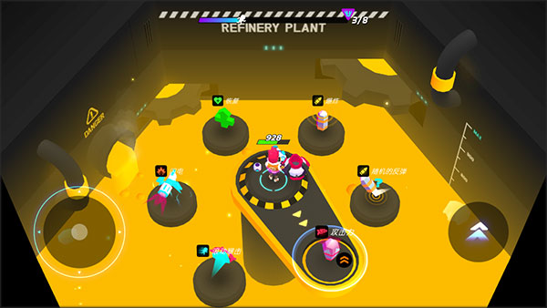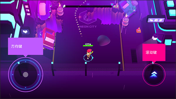 1、下载安装好克隆人霓虹危机,进入游戏,左边是控制人物移动的方向键,右边是滚动键控制人物的翻滚。