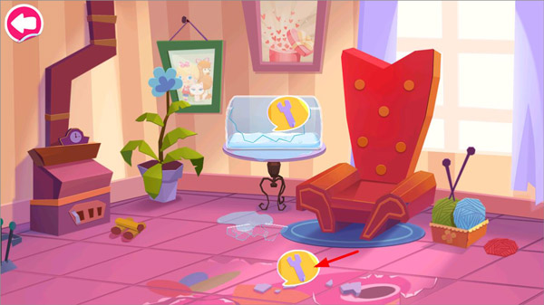 2、哎呀,瞧瞧这是谁的房间,怎么乱成这样,先把地上的地板修复好再慢慢修理鱼缸;