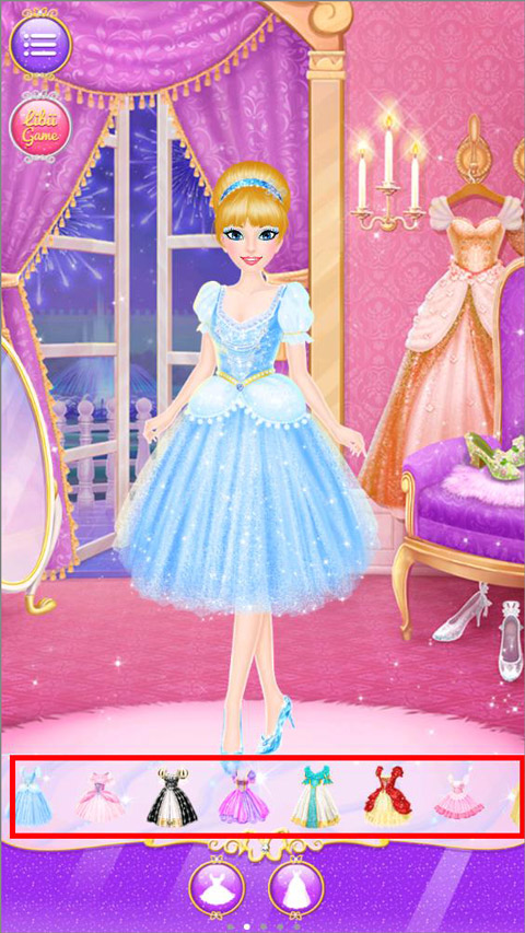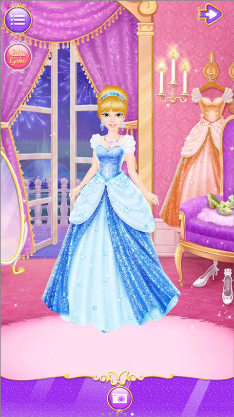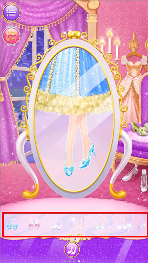 4、最后到换装间挑选一件华丽的舞会礼服,别忘了在穿衣镜前试穿一双自己心仪的高跟水晶鞋;