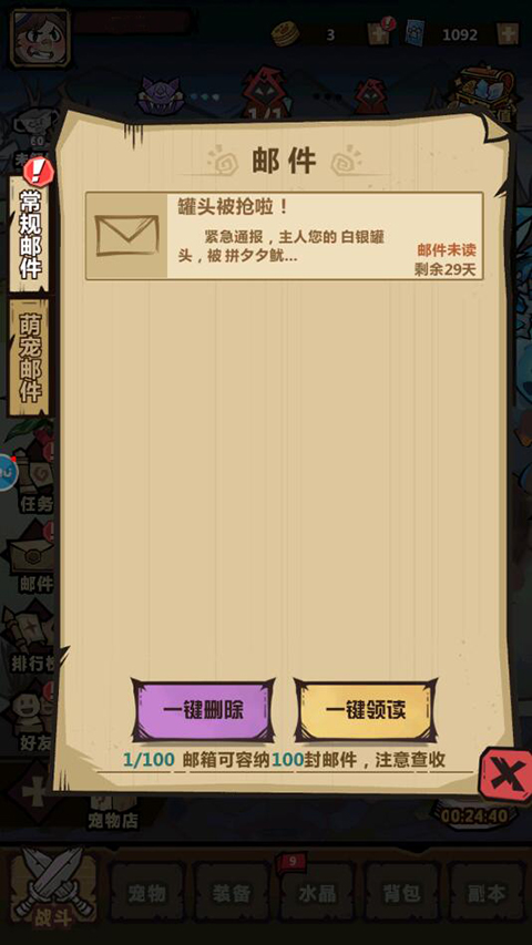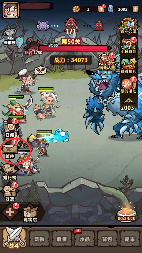 4、点击兑换后我们回到游戏主界面,然后点击一下邮件图标