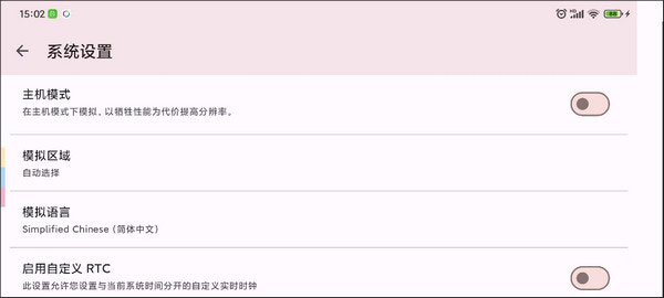 4、系统设置,这里比较关键。switch掌机、主机模式都是这里模拟开启,然后运行switch游戏时的语言和地区也是这里更改的,要退出游戏才能改