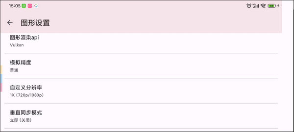 6、如果手机配置比较差,比如骁龙6系处理器打完官方驱动后其实也能勉强模拟switch,在这里把yuzu的模拟分辨率改成0.5倍(360x540),用最低的分辨率总能运行吧。