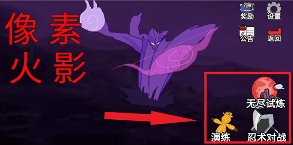 2、然后就可以在无尽、演练、忍术三个对战模式中选择自己喜欢的开始对战啦。
