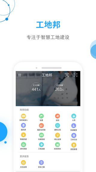 工地邦管理端app是由成都法尔美科技有限公司为建筑施工企业打造的一款智慧工地管理平台,集成多业务管理系统,满足工地需求。软件支持实时监控,可以进行远程巡查,高科技防盗尽在掌握,过往录像可以长期保存,便于随时调查,不放过任何蛛丝马迹。软件可以快速添加成员,三秒认证一秒离场,实名管理就是如此轻松,还有自动拍照随时查验的安全巡检功能,有效杜绝违规操作,是工地上不可多得的小能手。有需要的朋友们赶紧点击下载吧。