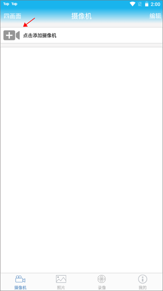 1、用手机号和验证码注册并登录软件主页面,点击【摄像机】界面上的“点击添加摄像机”。